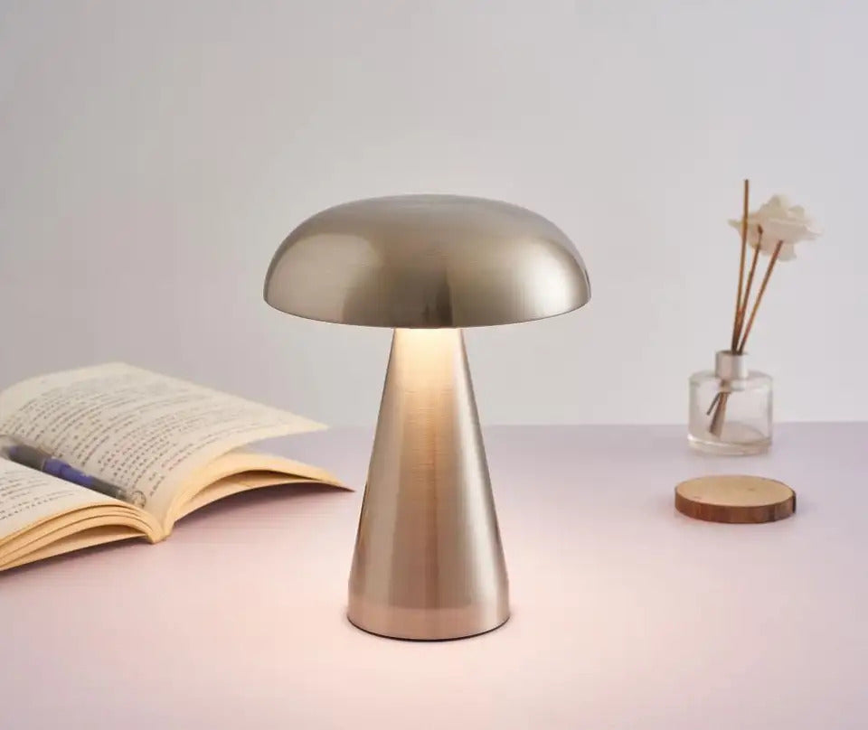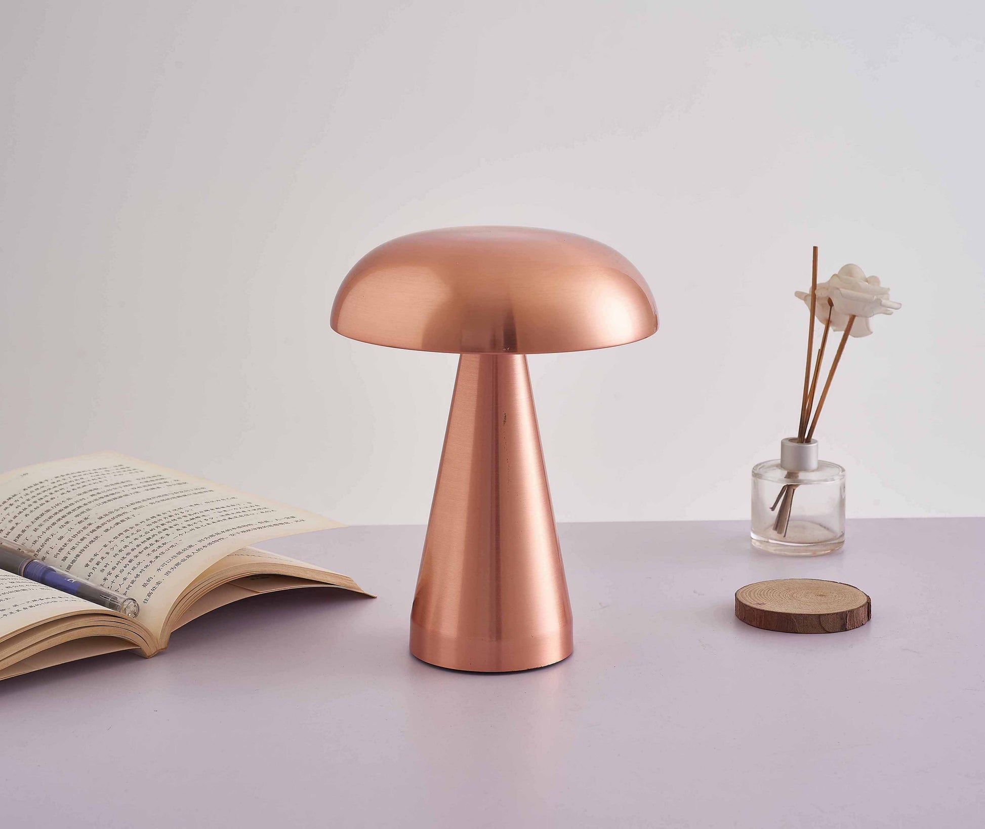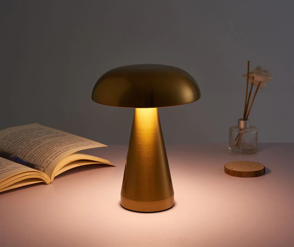 Introducing a classic and noble designed lamp. A domed shaped top with a touch-sensitive feature, you can easily switch between three different light settings to match your mood or the time of day: warm white, cool white, and natural white. The LED technology provides energy-efficient and long-lasting lighting, and the somewhat mushroom design adds a touch of unique flair to your space. Charged with a Type C USB and holds a long lasting 1,800mAh battery.
